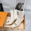 L✔️驴家urban twist系列 金属扣方头高跟短靴 🔺驴家2021年秋季系列新品上市此款Urban Twist女鞋对经典细高跟鞋型进行时尚升级,以柔滑的小牛皮鞋面搭配亮眼的金色金属方头头,刻有 L+V Circle 标识,凸显路易家品牌特质。 内里:羊皮/ ✔️鞋面:小牛皮/ ✔️鞋底:原版真皮大底✔️ 跟高:7cm 正码:35-39 ( 34.40 定做不退换) TX1255450