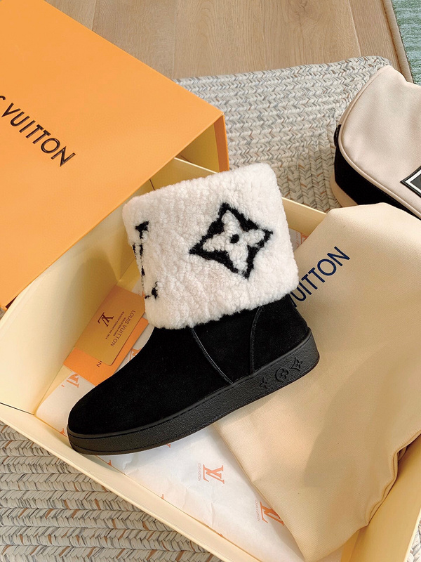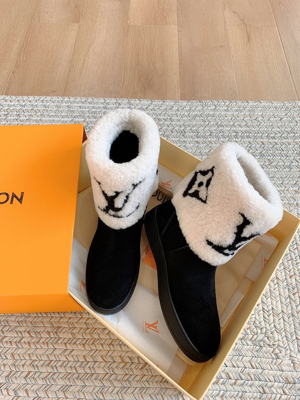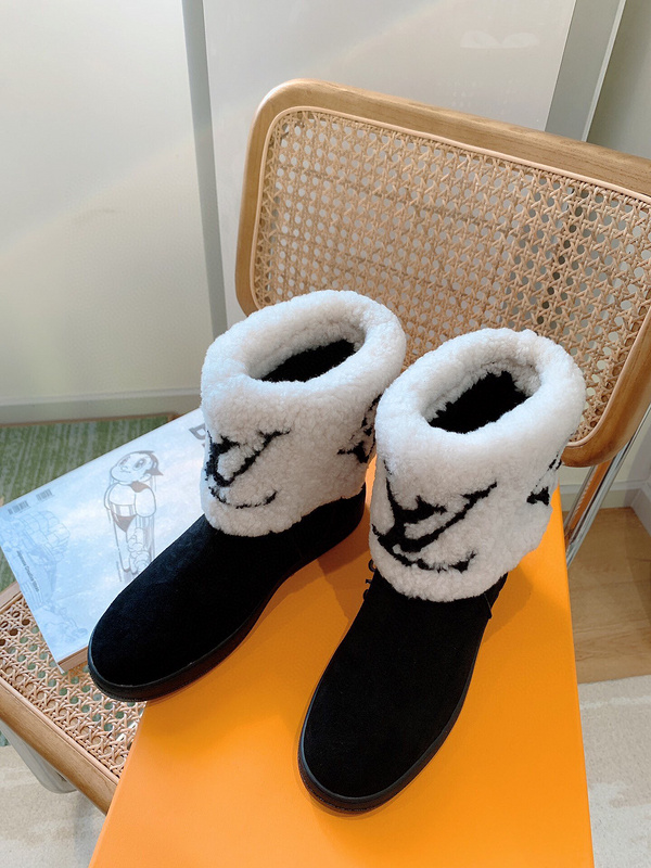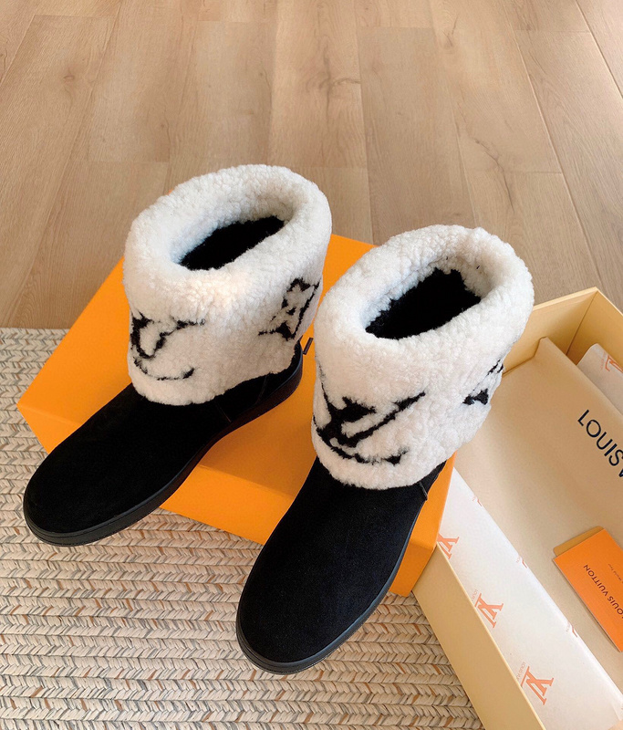 2021s秋冬新品羊毛短靴 代购级,LV 驴家羊皮毛一体短靴 鞋面原版高丝光羊京皮,内里垫脚全羊毛 保暖性极好 开模TPU大底 质感媲美原版 防滑耐磨 logo清晰可见 Size:35-40 TX1289340