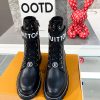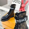 新品发布会 LV平底靴采用小牛皮碰撞橡胶元素:Louis Vuitton 标识点缀可调节魔术贴,LV Circle 标识栖身长鞋带。面橡胶外底延续军靴设计,搭配 Monogram 帆布鞋舌和便于穿脱的侧拉链,3色任选(35-40码) TX1193310