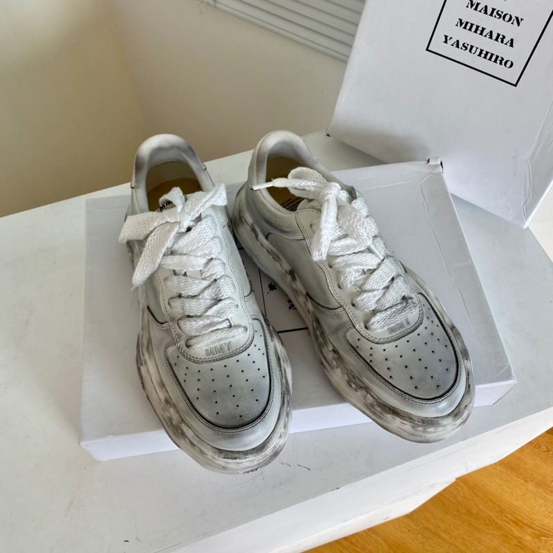 2021升级版 三原康裕Maison MiharaYasuhiro情侣款板鞋 余文乐同款 复古做旧 引领潮流时尚 原单品质 面采用MMY复古优质头层牛皮Coats针车走线平滑细腻 鞋帮缝真线更牢固 硫化工艺+溶解MD+橡胶底 更有防滑及回弹性 皮鞋码数:35-44 原盒包装 TX1285320