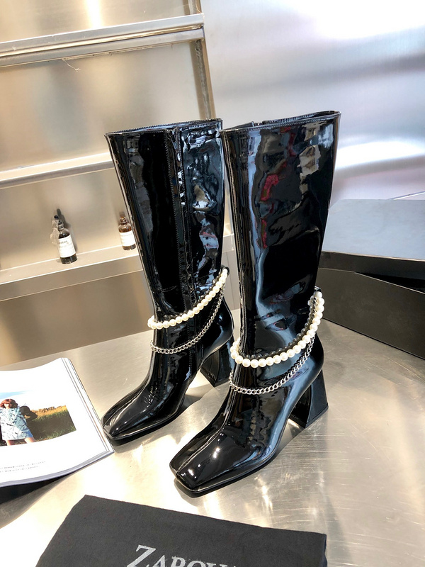 💥Nina Zarqua💥 低调确盛名,前卫也拾旧,珍珠搭配金属链条帅气复古风尽情演绎行走在街头的西部女郎方头靴头极尽狂野气息,宛如一股清流尽收时尚界宠儿眼底🙈🙈 🏴 面料:漆皮 🏴 里料:头层猪皮(垫脚) 🏴 大底:橡胶大底 🏴 码数:35-40 🏴 包装:全套包装发票 TX1173340
