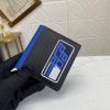 Prada Men’s Black Leather Card Holder with Blue Logo Patch