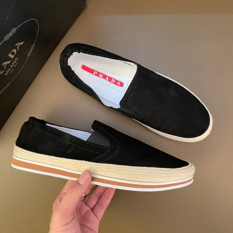 独家首发 【普拉达】~独特现代风运动鞋。专柜代购休闲鞋 男士2022专柜同步发售,意大利进口原版品牌精选头柔软牛皮。羊皮内里 (拒绝脱色磨脚)鞋底:原厂特供原版底, 超酷 法国懒人风格设计 ️ 懒人套脚套脚 原单品质 超舒服原版底 。 适合户外司机驾车完美男鞋码数:38-44 45码可定做!黑色 米色。白色 蓝色 多色颜色🉑️选 长期供实体店 TB802260