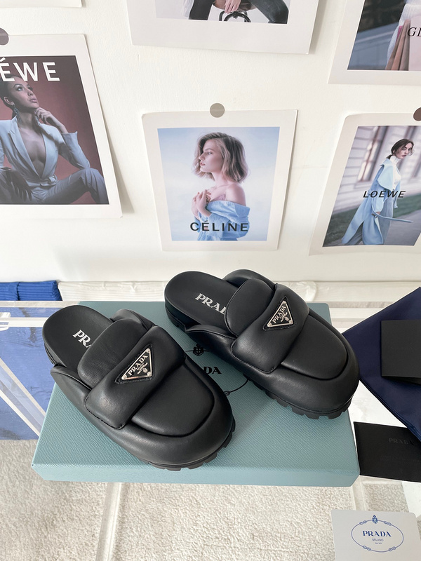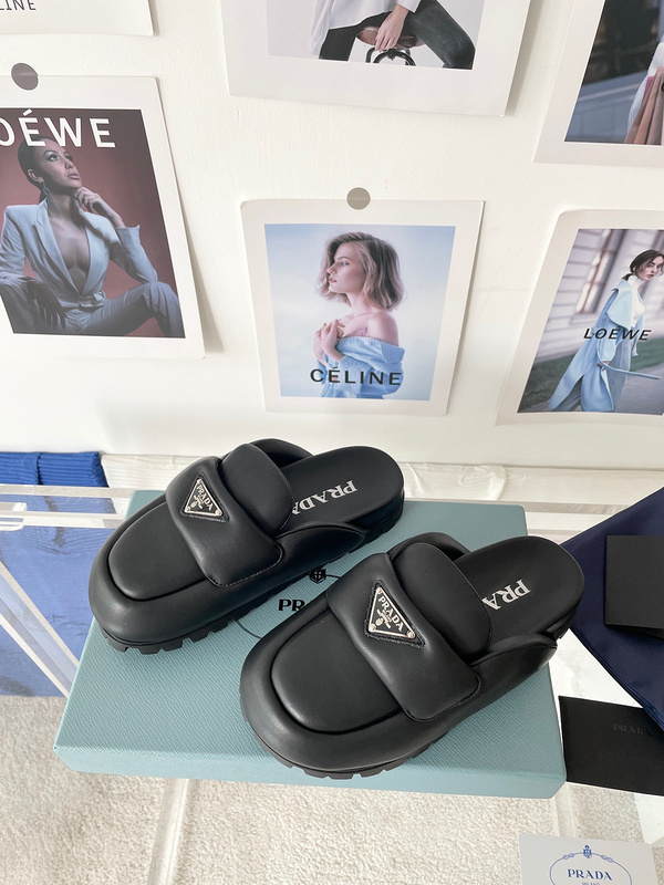 NEW .✔︎ⒽⒽ ➫ Prada新款面包拖鞋上新 _______________________________ 这款膨胀可爱系数💯 对于可爱的事物真的无法自拔!通体皮质,加上经典p家logo算是比较低调又不容易撞的款式。可可爱爱的上脚很舒服完全不用担心脚胖瘦能否驾驭的问题,关键很好搭配。时髦又舒服,穿脱更是方便,一整个爱住! 【新品上新】 ….……………………………………………… ▪️面料:柔软羊皮 ▪️大底:轻便泡沫大底 ▪️内里:柔软羊皮 ▪️跟高:平底 ▪️原版定制版本、专柜原版包装 _______________________________ ❥∙Size : 35-40(标准码) ❥∙Clour: 黑色,白色,米色,黄色 ❥∙TX907280