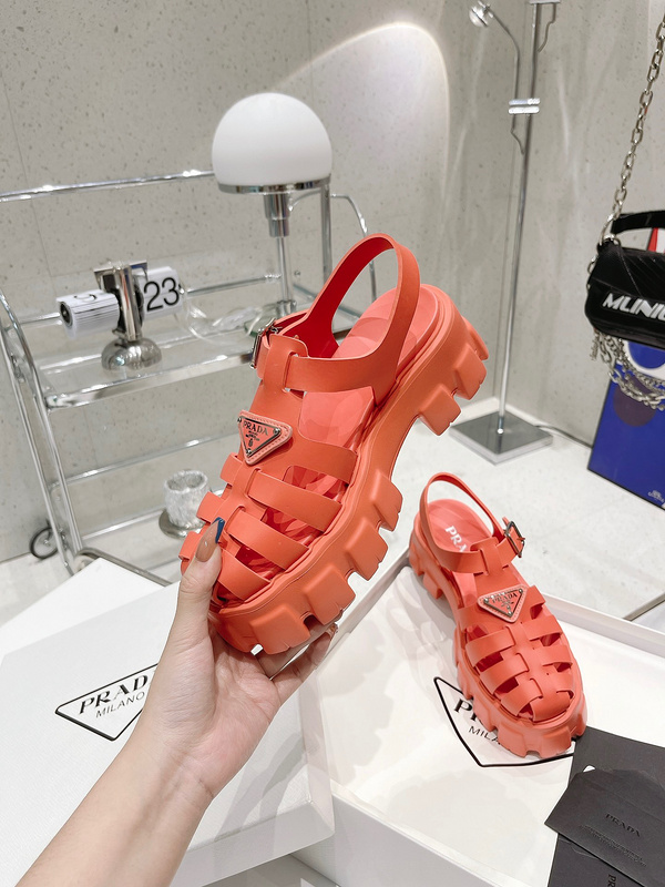 高端版本 超火爆 prada 普拉达 2022最新春夏锯齿罗马编织厚底橡胶凉鞋 复古时髦前卫的轮齿55mm 厚底鞋底搭配橡胶鞋面,让整双鞋轻便舒适 鲜艳色彩 满足不同风格时髦人士的多种选择! 标志性金属三角标搭配古沙滩凉鞋造型,每一个设计元素都踩在时髦点上! 码数35-40 TX1135260