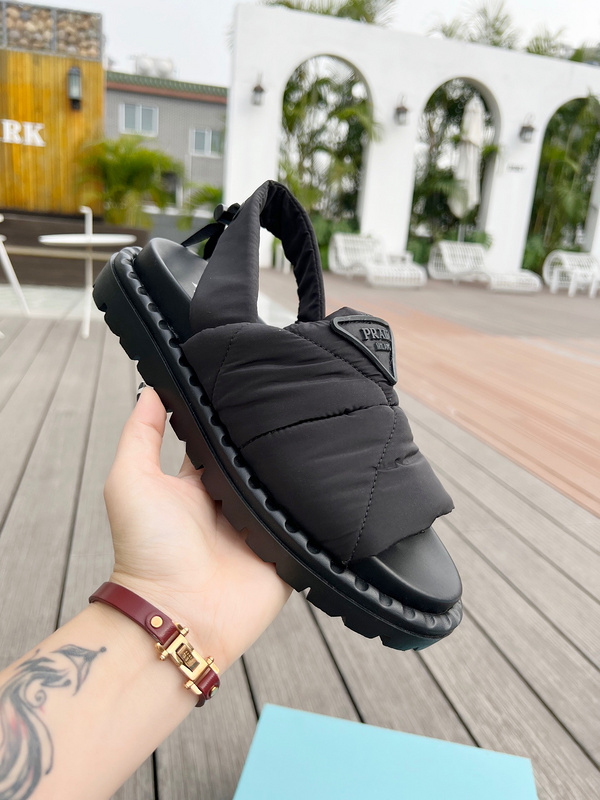 最高版本,prada/普拉达明星同款Blow绗缝尼龙凉鞋,三角经典LOGO标,【码数】35-41,值得拥有 TX1183270