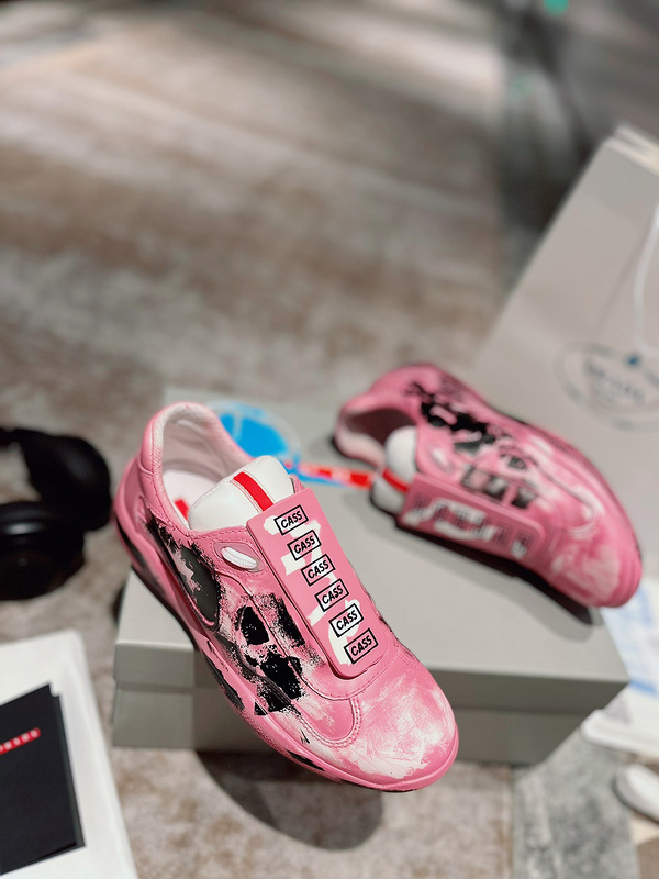 全球限量 3000 双 CassxPrada 以全新形式探素设计边界,彰显独特视角。Prada 携手艺术家 Cassius hurst, 籍由22款多变设计塑造4种风格,打造定制胶囊系列。SUST4IN:鞋面采用相同颜色不同深浅的两种喷漆深色作为基底,浅色覆盖其上,最后饰以白色浮雕感手绘。大底采用锡模抽真空,面料头层牛皮。码数35一46 TX1199400