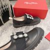 Roger Vivier夏日新能量Walky Viv’ 钻扣皮革运动鞋 皮革手工制成,配以锯齿防滑厚底,简便易穿。闪耀钻扣为帅气女孩装束增添一丝精致优雅 皮革鞋面 羊皮内里 罗缎嵌边 前部弹力扣带 闪钻饰扣 皮革内底 包裹式橡胶鞋底约2.5cm 码数: 35-40 (40码不退不换) CX19340