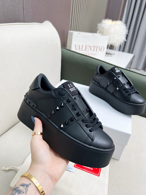 Valentino 2023爆款小白鞋GaravaniRockstudUntitled -小牛皮厚底运动鞋 -黑色色调铆钉+黑钻,装饰带特别数字11标签 -背部橡胶铆钉,轻质进口耐磨橡胶鞋底,鞋底高度:5.7cm -码数:35-41 TX1229240