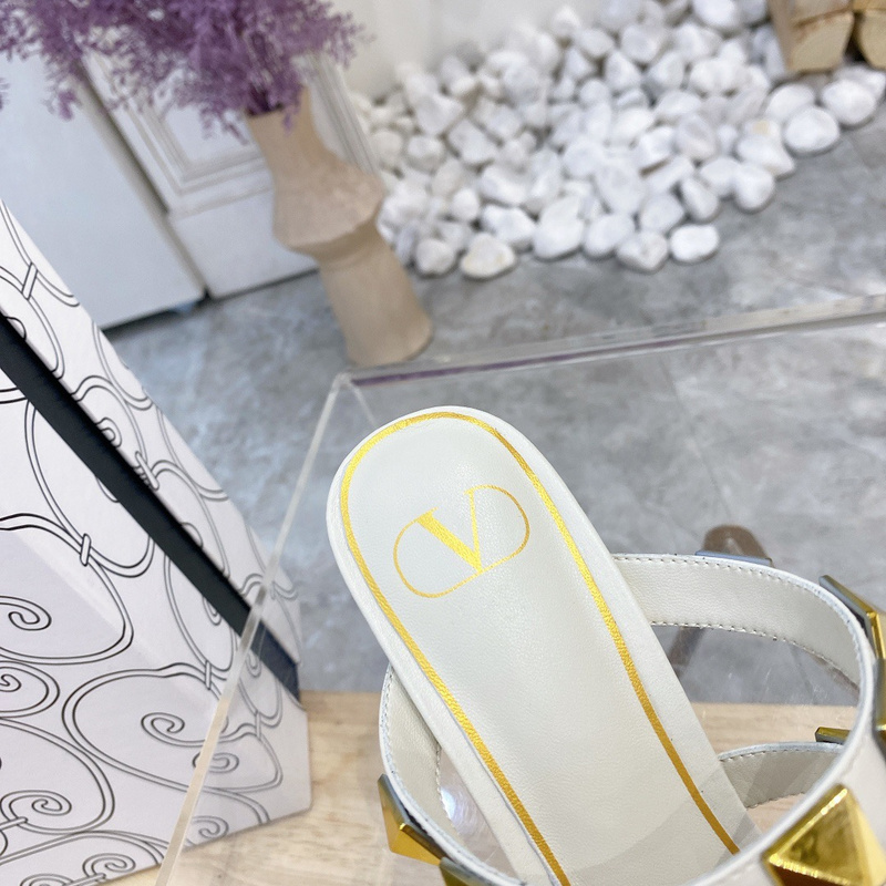 Valentino 华伦天奴春夏新品铆钉鞋上新☑️ —————————————— 最新金色大铆钉元素 满满的高级感 !时尚度爆棚~ 跟高: 9.5cm 鞋面:亚光羊皮 内里: 羊皮里 大底:意大利真皮大底,橡胶底可选 颜色:两种款8色可选 码数:34-41(34和42定做不退换) TX1195260