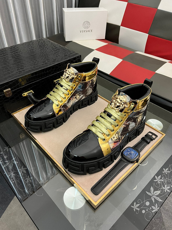 ⌚️⌚️范思哲 最 2022新款精心打造,引爆全场!不断创新的国际品牌 此款男士四季高帮休闲鞋,原版版本,鞋面采用牛皮面料 ,皮垫脚➕真爆超轻大底,透气舒适以质量说话 码数:38-44️色可选 TB906240