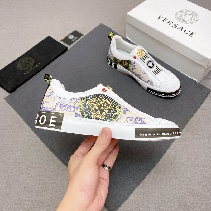 【范思哲VERSACE】~独领风骚》2022经典低帮懒人款,瓦莎琪压花纹 鞋面LOGO更是重金精心打造 材料:🐂进口头层小牛皮,羊皮内里 欧美大师独特版面设计 耐磨仿滑原版大底 青年乐福款 休闲运动板鞋超级舒服。范思哲原版复刻 适合司机驾车外出 !.男鞋码数38-44 45 黑色 白色 🉑️选 编号006 TB921230