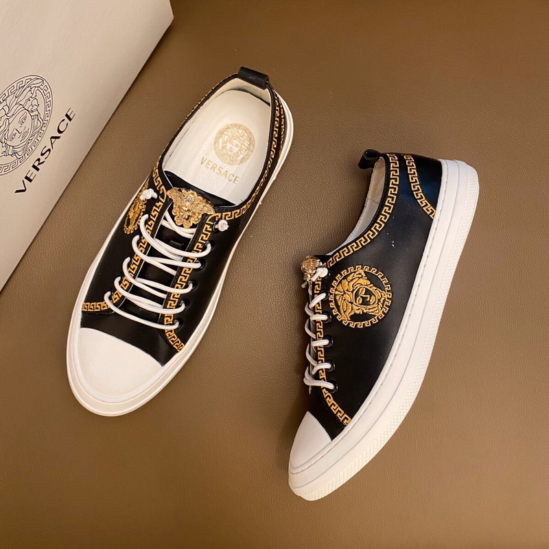 全球抢购中🌍 市场领先款 最高品质《【范思哲VERSACE】~独领风骚》2020经典高帮,低帮、 原版瓦莎琪 鞋面 霸气LOGO更是精心打造 材料:🐂进口头层小牛皮,羊皮内里 欧美大师独特版面设计 完美打造专柜品质,懒人套脚设计 耐磨仿滑原版大底 运动跑步风设计 , 适合司机驾车外出 !!绝对的焦点 高端 优雅.男装男鞋码数38-44 45可定做 黑色 白色 🉑️选 TB802240