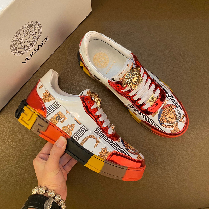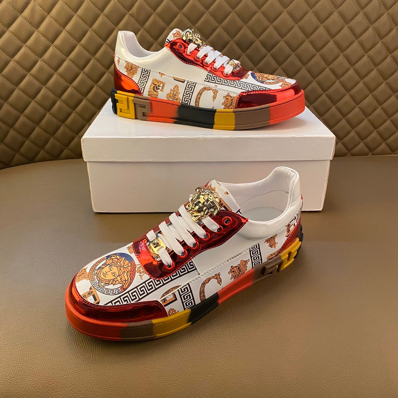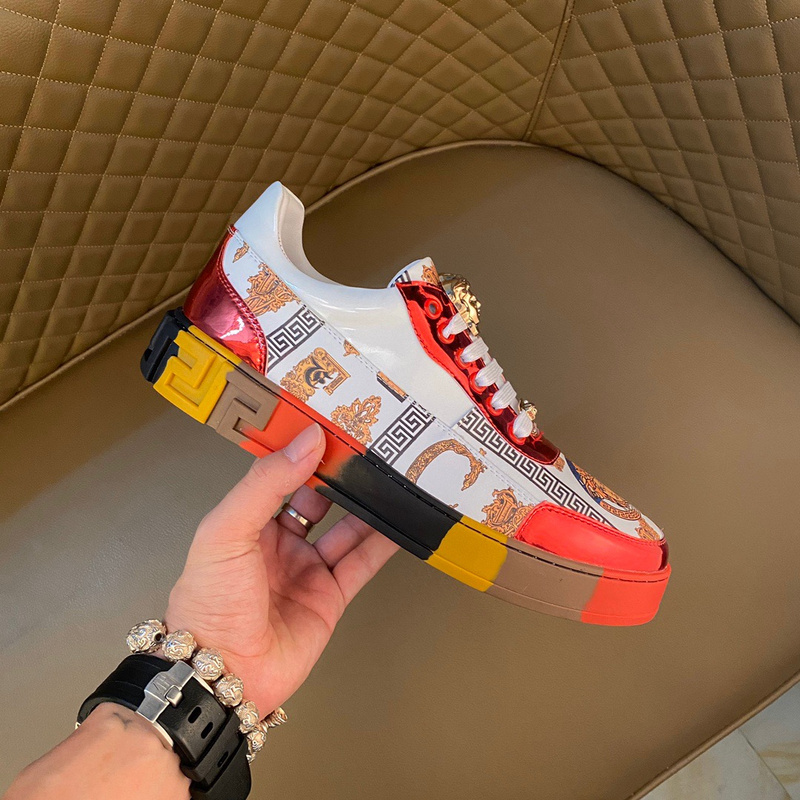 全球抢购中🌍 市场领先款 最高品质《【范思哲VERSACE】~独领风骚》2021经典低帮懒人款,瓦莎琪花纹 鞋面LOGO更是重金精心打造 材料:🐂进口头层小牛皮,羊皮内里 欧美大师独特版面设计 耐磨仿滑原版大底 青年乐福款 休闲运动板鞋超级舒服。范思哲原版复刻 适合司机驾车外出 !.男鞋码数38-44 45 白色金边 白色红边🉑️选 tb802240
