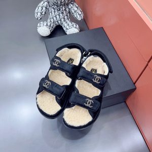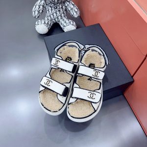 Chanel Women’s Fur Sandals with Chanel Logo-005