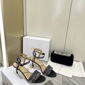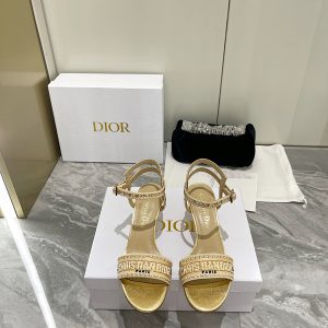 Dior🥂————————迪奥 顶级版本~ 原版开模 采用原版意大利楦头 代购级别 原单品质 这款 Dway 高跟凉鞋重新诠释 的标志性单品 彰显优雅气质 💕采用棉质面料精心制作 饰以金属光泽线刺绣 点缀以金色仿水晶 鞋面的精美饰带突显标志刺绣 款式精美! 跟高:6.5cm 大底:进口真皮大底 尺码:35~39(40🉑订做) TX1175320