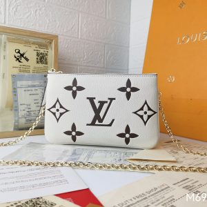 LV Double Zip Pochette White Monogram Chain Pouch