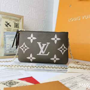 LV Double Zip Pochette Monogram Chain Pouch -Blue