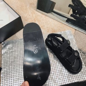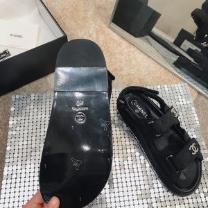 Chanel Women’s Black Leather Sandals with Logo Print $169.00
